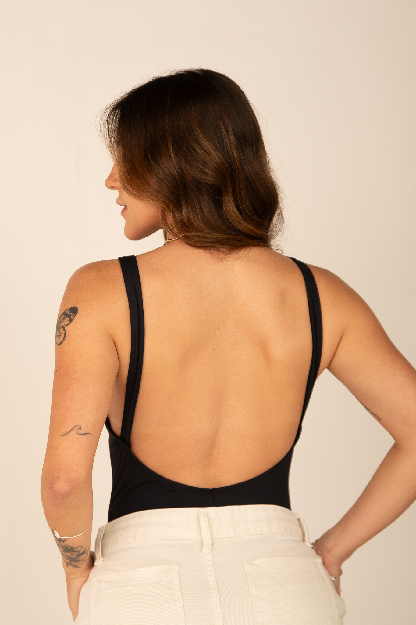 O body ideal para quem busca elegância com um toque de ousadia. Com design minimalista, essa peça conta com decote reto na parte frontal e alças largas que garantem conforto e sustentação. O destaque fica para as costas cavadas, que adicionam sensualidade na medida certa, além da cava alta nas pernas, que valoriza a silhueta e proporciona um visual alongado.